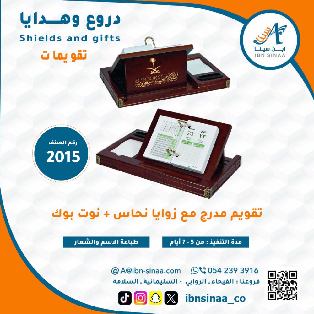 اجعل مكتبك أكثر تنظيمًا وأناقة مع تقويم ميلادي مدرج من متجر ابن سينا الإلكتروني. يتميز هذا التقويم بتصميمه العصري والأنيق، مما يجعله إضافة مثالية لأي مساحة مكتبية.